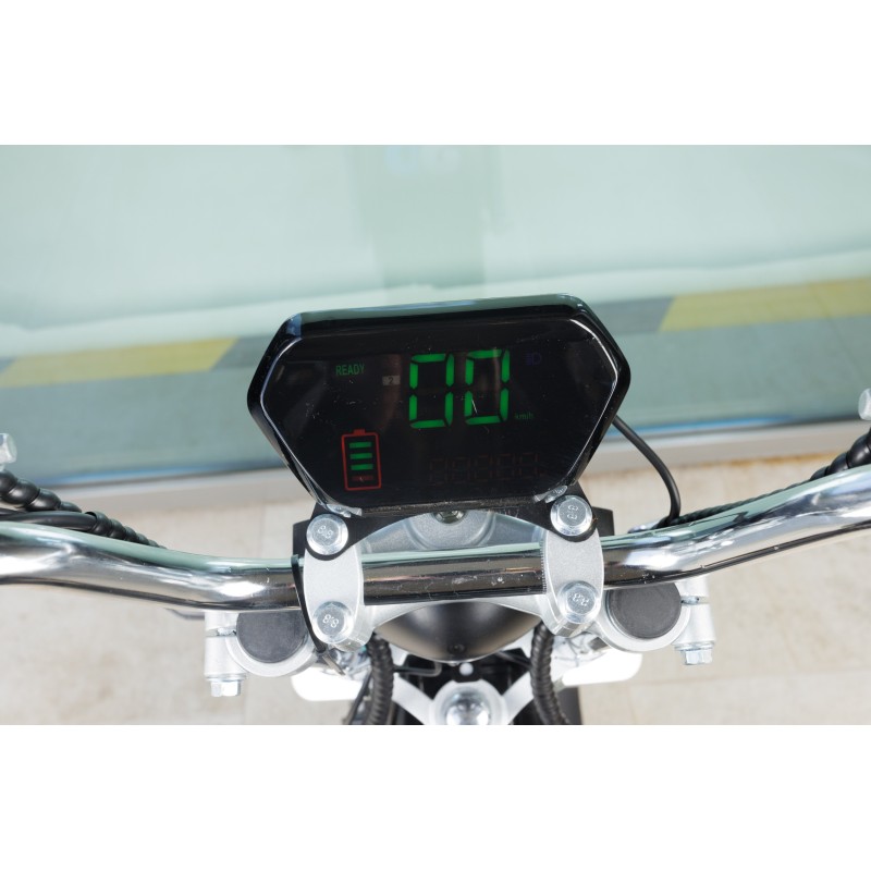De SB50 Urban License is gebouwd voor efficiëntie en duurzaamheid en uitgerust met een krachtige 1500W-motor. Met een topsnelheid van 45 km/u is deze elektrische bromfiets ideaal voor snelle verplaatsingen in de stad, terwijl de actieradius tot 120 km per lading je de zekerheid geeft dat je je bestemming zonder zorgen bereikt.