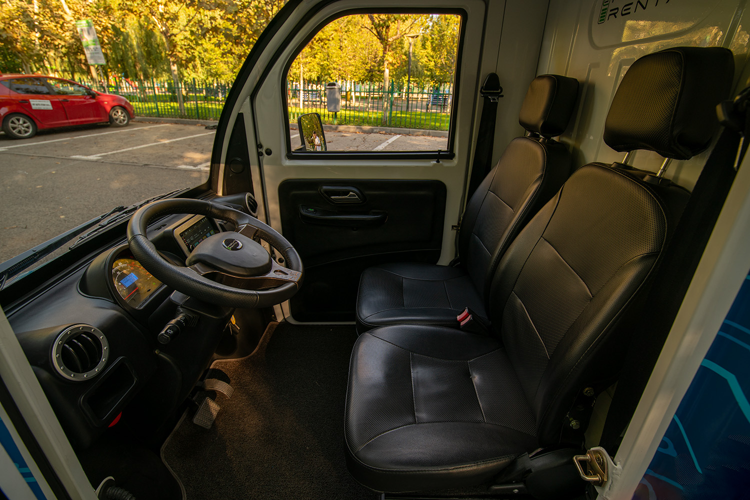 Mist- en noodverlichting verbeteren de zichtbaarheid bij slecht weer, terwijl airconditioning en verwarming het hele jaar door voor een aangenaam interieur zorgen. De ergonomische tweezits cabine is ideaal voor dagelijks gebruik in de stad.
