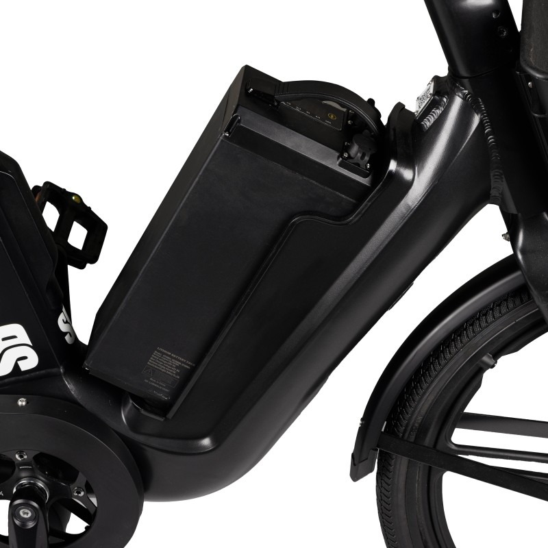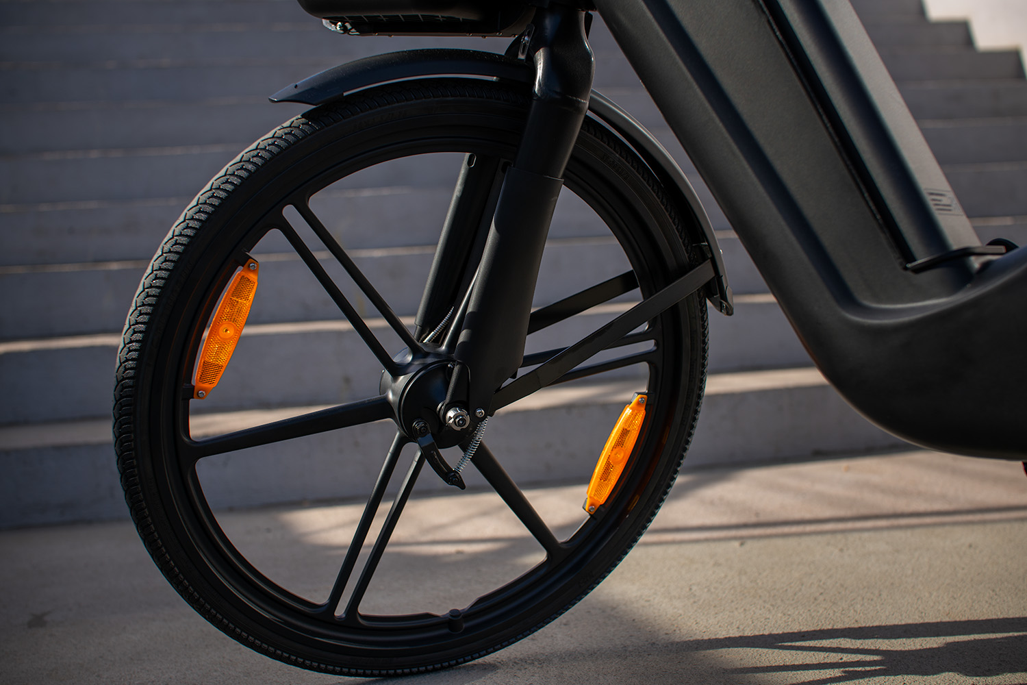 Parkeren is nooit een probleem: de fiets heeft weinig ruimte nodig en wordt geleverd met een eigen beveiligingskabel.